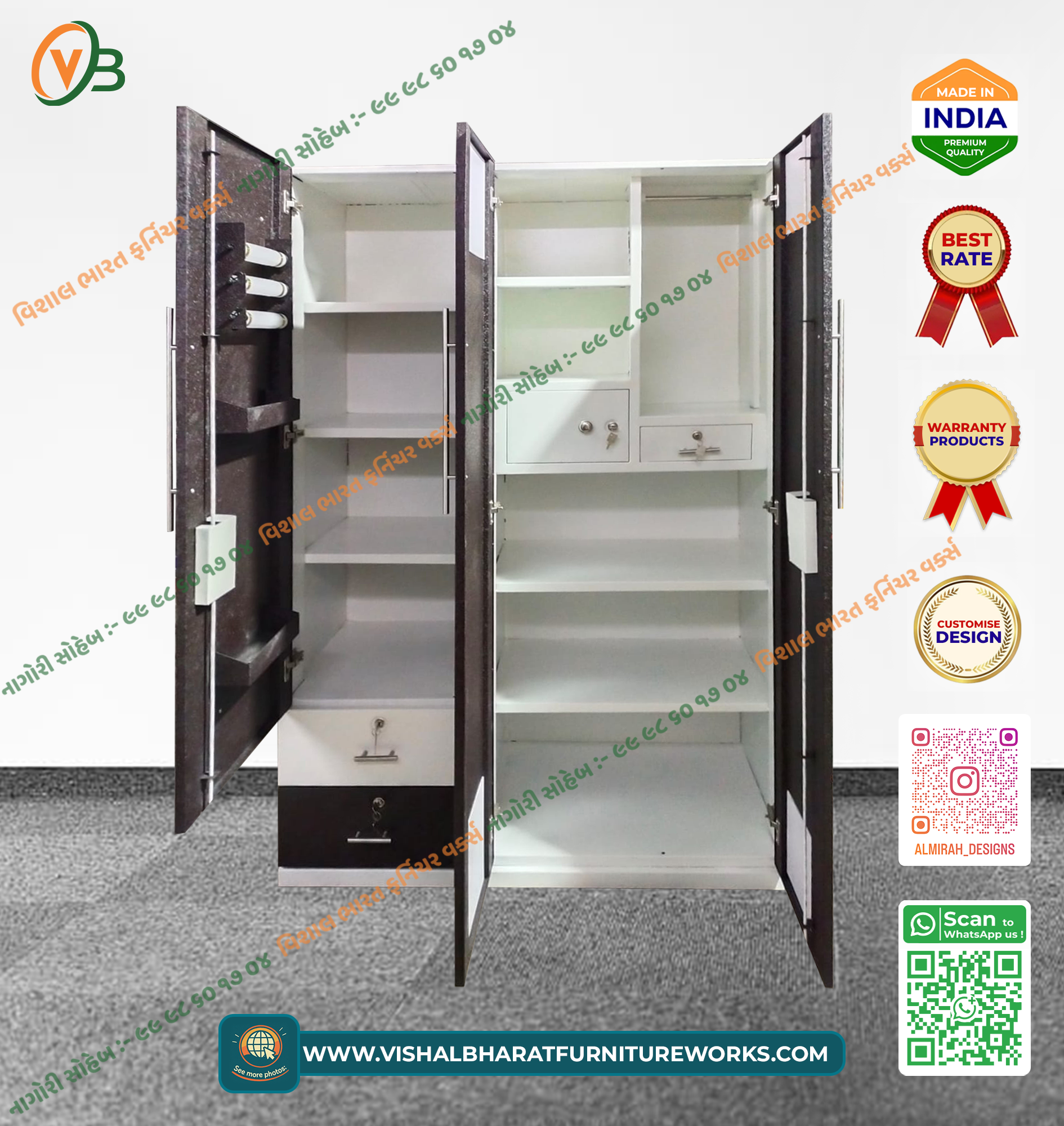 Executive 3-Door Steel Almirah with Base Drawers & Security Safe